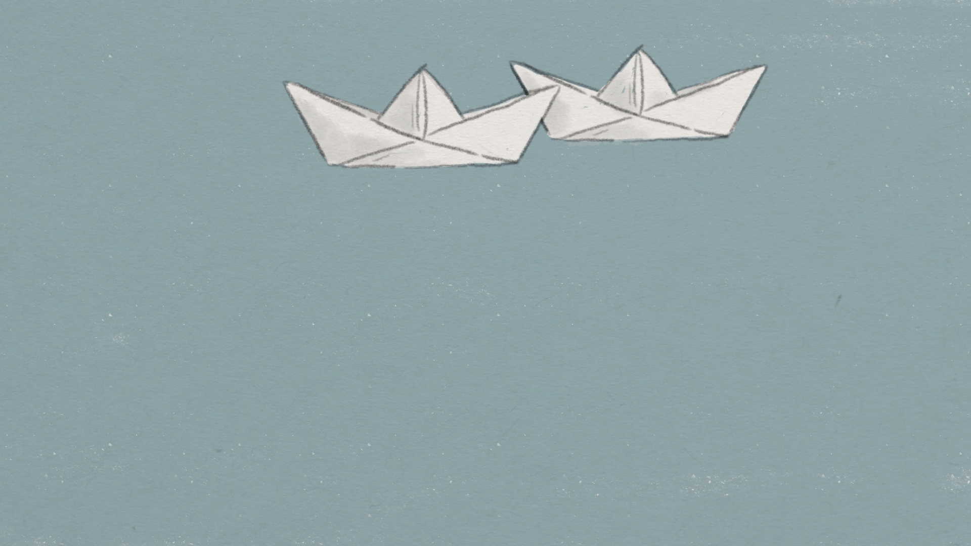 Martín es un niño que se enamora de la luna al momento de nacer, y tiene un solo objetivo en la vida: alcanzarla. A medida que crece va perfeccionando sus métodos infantiles y temerarios para cumplir con su propósito. Martín prueba saltando por la ventana, trepando a fuegos artificiales o simplemente mirándola desde su habitación. Una noche, al ver el reflejo de la luna en el río Paraná, recurre a Juana, su vecina, una niña especialista en barquitos de papel, que además está enamorada de Martín. Juana lo ayuda a construir un barco con el que Martín navega hacia la luna a través del reflejo de ésta en el río. Para llegar a la luna hay que hacerlo con amor. Con amor y un barquito de papel.